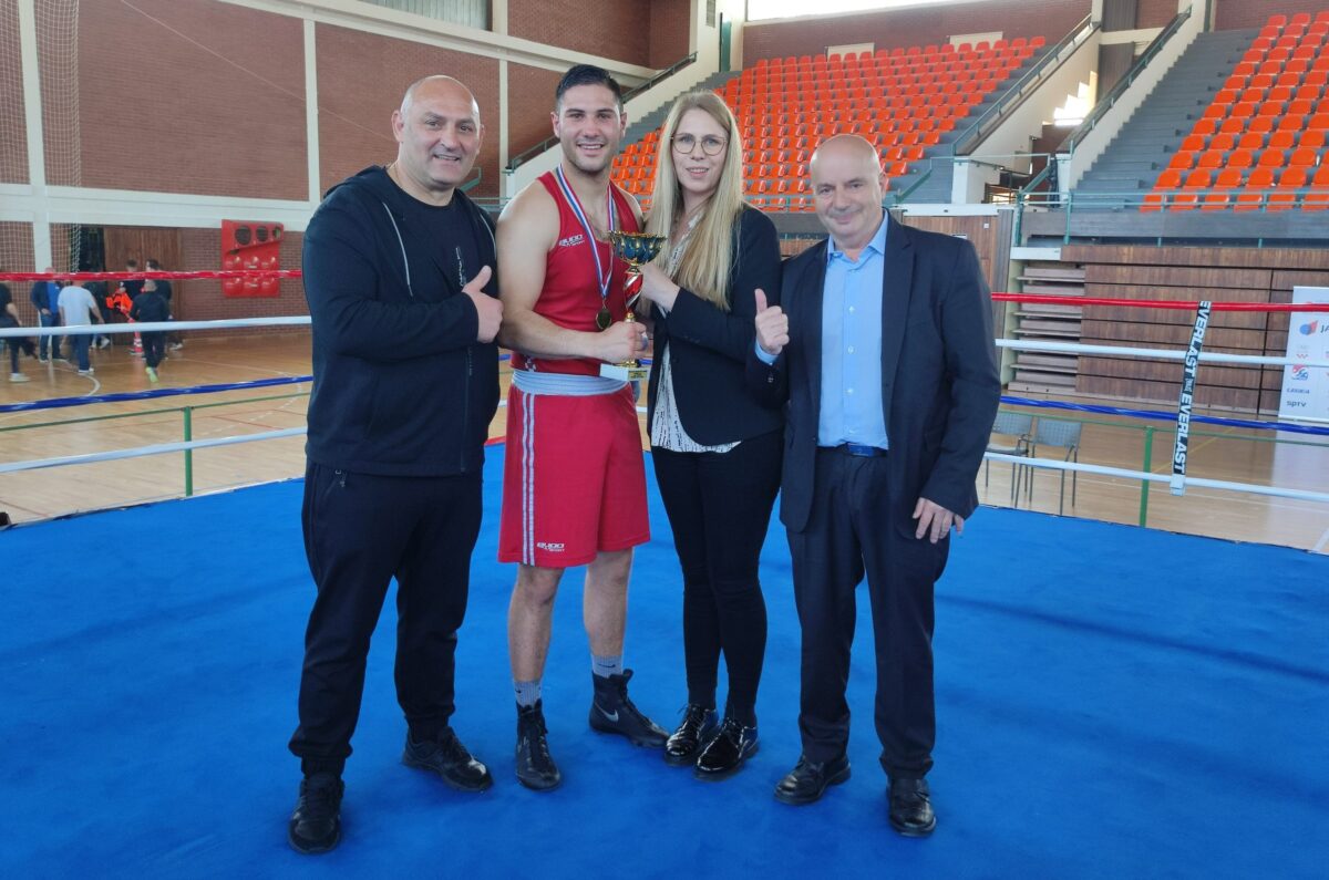 Glavna tajnica HBS-a Nikolina Jurić predala je DINI ŠTAJCERU, predsjedniku Boksačkog kluba Kutina. posebnu zahvalnicu za primjernu organizaciju.